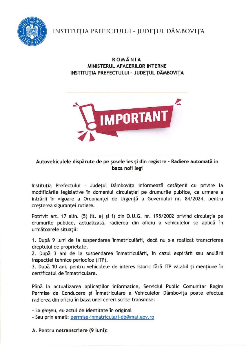 - După 3 ani de la suspendarea înmatriculării, în caz de expirare sau anulare a ITP-ului.
